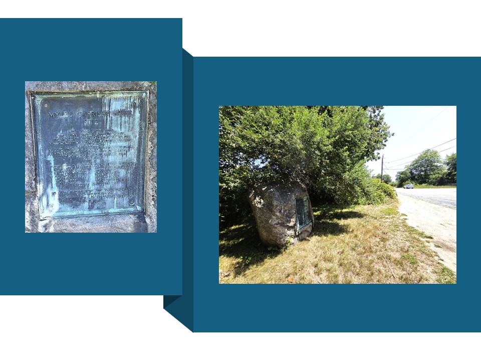 NEAR THIS SPOT STOOD THE JOHN MYLES GARRISON HOUSE THE PLACE OF MEETING OF THE TROOPS OF MASSACHUSETTS BAY AND PLYMOUTH COLONIES . . . WHO MARCHED TO THE RELIEF OF SWANSEA AT THE OPENING OF KING PHILIP’S WAR A.D. 1675.