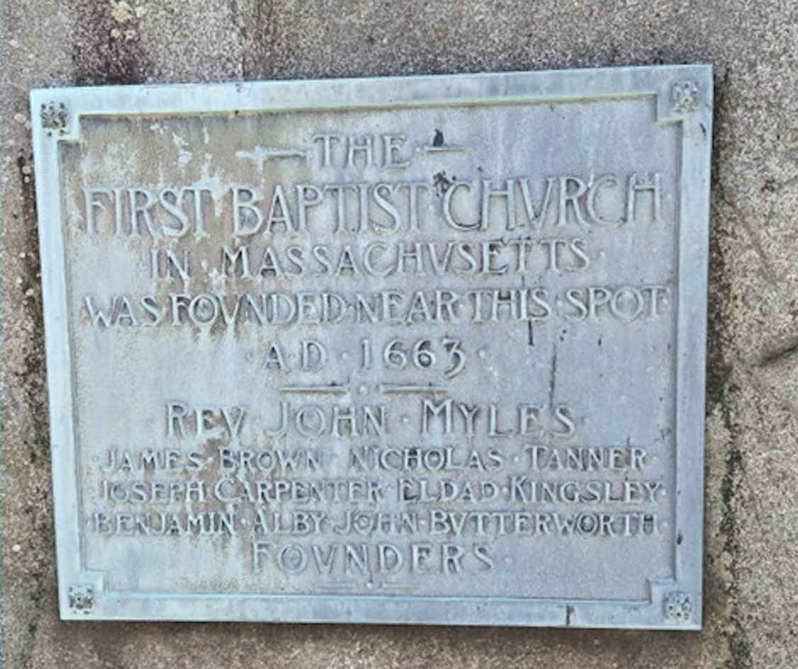 John Myles got the message. By 1663, Myles and some fellow Baptists, having fled persecution in Wales, established a new church in the Plymouth Colony Town of Rehoboth. Following the same playbook used in Wales of using private homes as his church, Myles’s first meetings in Rehoboth were held in the home of John Butterworth. Though Myles and his followers successfully escaped certain persecution back home in Wales, they quickly learned that not everyone in Plymouth Colony was accepting of their differing views of Christianity. This reality became clear when, in 1667, the Plymouth Colony court ruled that “for theire breach of order in setting up of a publick meeting without the knowledge and approbation of the Court,” John Myles and another member of his congregation, James Browne, were fined five pounds each. The Court also ruled that “theire continuance att Rehoboth, being very prejudicial to the peace of that church and that towne, may not be allowed . . . yet they shall remove theire meeting unto some other place, where they may not prejudice any other church . . . .”