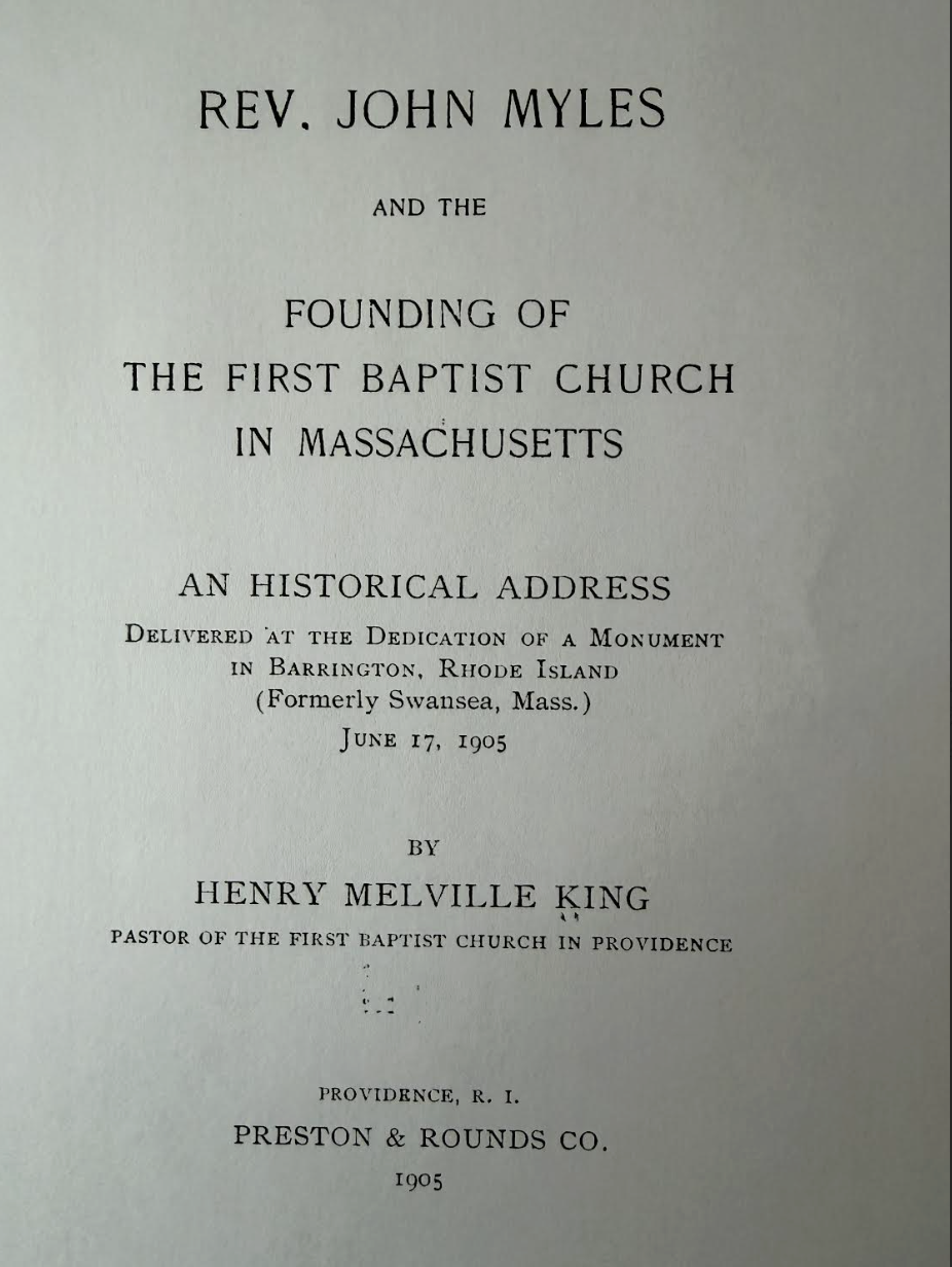 The Rev. Dr. Charles K. Hartman, Pastor, “Biography, John Myles: Church Planter,” First Baptist Church in Swansea, Newsletter (Oct. 2004).
