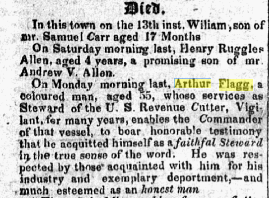 Obituary of Arthur Flagg, Jr. from the Rhode Island Republican, June 21, 1827