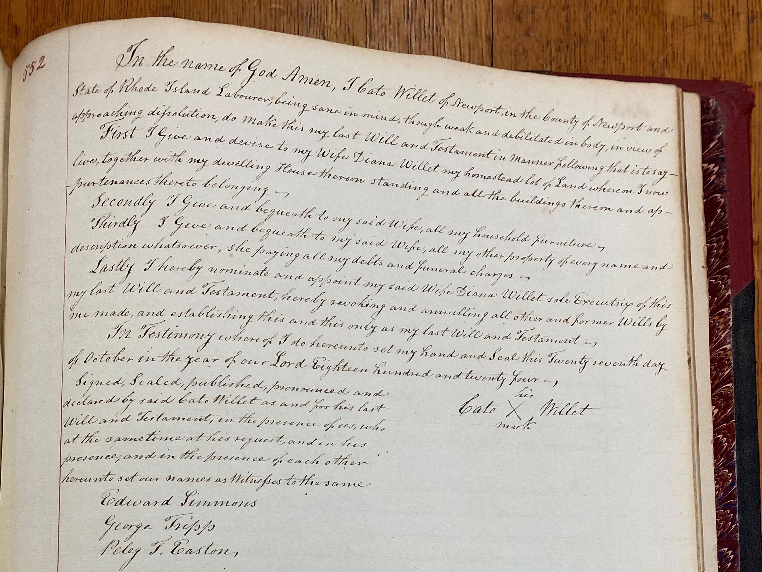 Will of Cato Willet, Probate Records, vol. 6, Newport City Hall Records (the author).