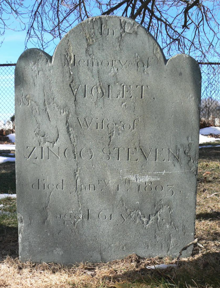 “In Memory of Violet Wife of Zingo Stevens died Janry 1st 1803 aged 61 years” (Rhode Island Historical Cemetery Commission)