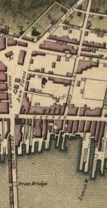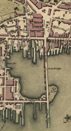 One Distilling house Standing upon Dyer’s Wharf 30 feet by 20 feet Adjoining to Samuel Freebody & That Francis Bradley [probably Brinley] Lived in many years but now Burnt