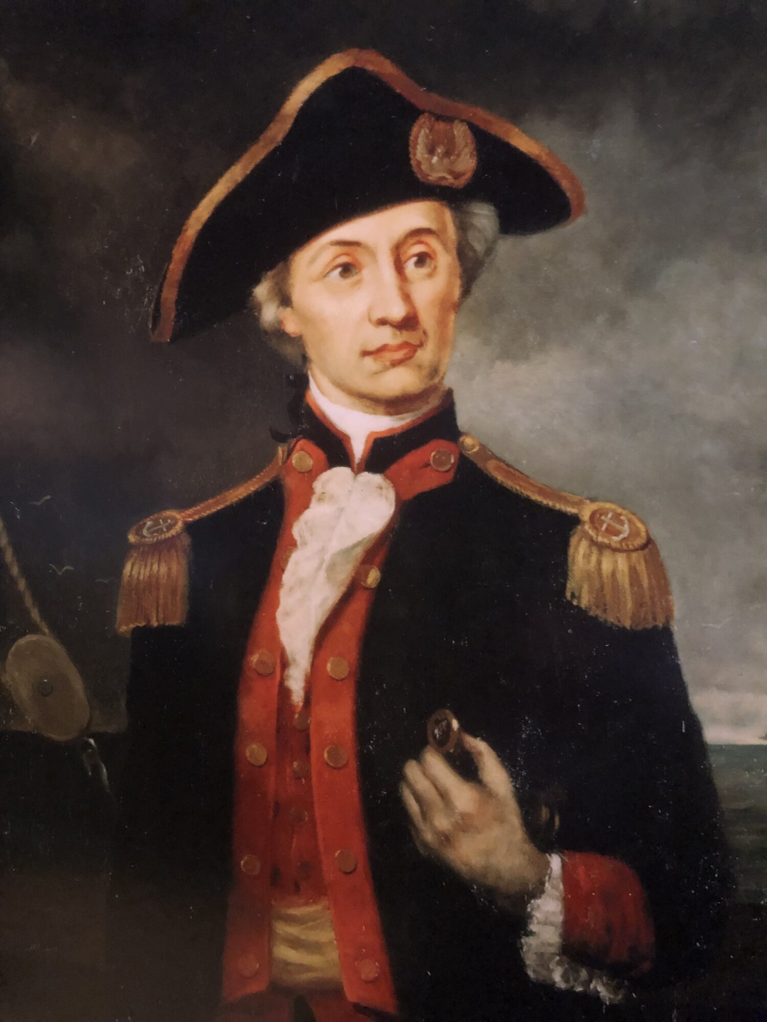 In 1776, John Manley was a Deputy Continental Agent for the Continental Navy. In general, he purchased items related to the construction and fitting out of new Continental Navy ships, and the repair and fitting out of existing Continental Navy ships, in Newport and Providence. The existing ships included the frigates Columbus and Alfred, the sloop Providence, and the brig Hampden. The frigates under construction in Providence were the frigates Warren and the Providence. During this period, America’s greatest navy hero of the Revolutionary War, Captain John Paul Jones, was in Newport awaiting his next mission and having the Alfred re-fitted by Manley. The Newport Historical Society has Manley’s account book of Manley supplying Captain John Paul Jones with supplies and equipment in preparation for Jones sailing out of Newport.[2] (John Manley of Newport should not be confused with the more famous Continental Navy captain from Gloucester and Boston, Massachusetts, of the same name).