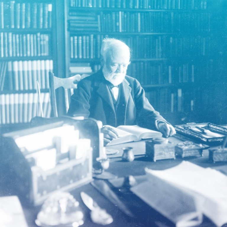 Photo of Andrew Carnegie at his desk circa 1910. He was born in Scotland and made it big in America as an industrialist (Carnegie Hero’s Fund Commission Website)