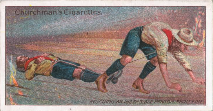 Boy scout practicing rescuing a pretend drowning victim, circa 1910 (New York Public Library Digital Collections)