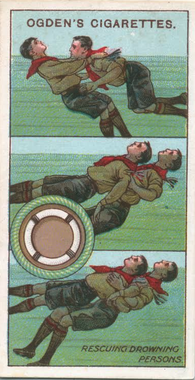 Boy Scout rescuing a pretend drowning victim, circa 1910 (New York Public Library Digital Collections)