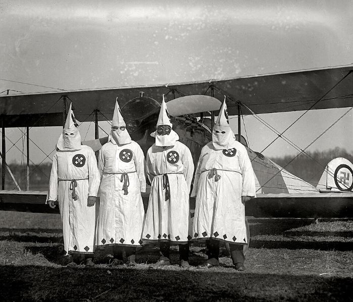 Klan with plane in Virginia that would be used to drop KKK literature to those below, 1922 (Library of Congress)